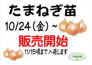 タマネギ苗販売予定 10/24(金)~11/中旬